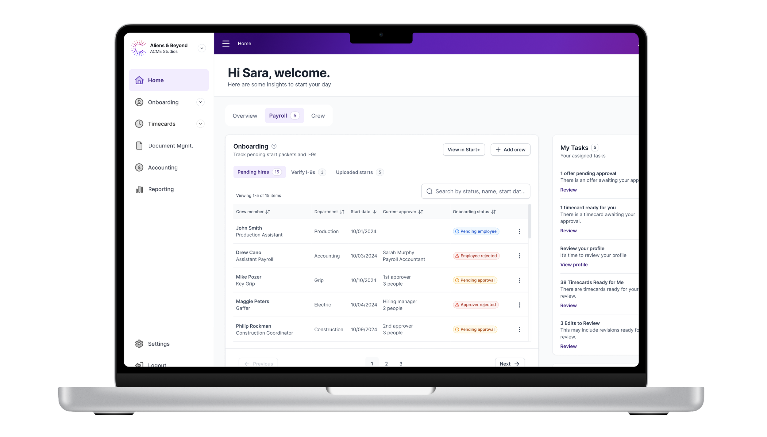A centralized, intuitive dashboard designed to streamline production accounting workflows by consolidating key data, enhancing communication, and offering customizable tools for greater efficiency.