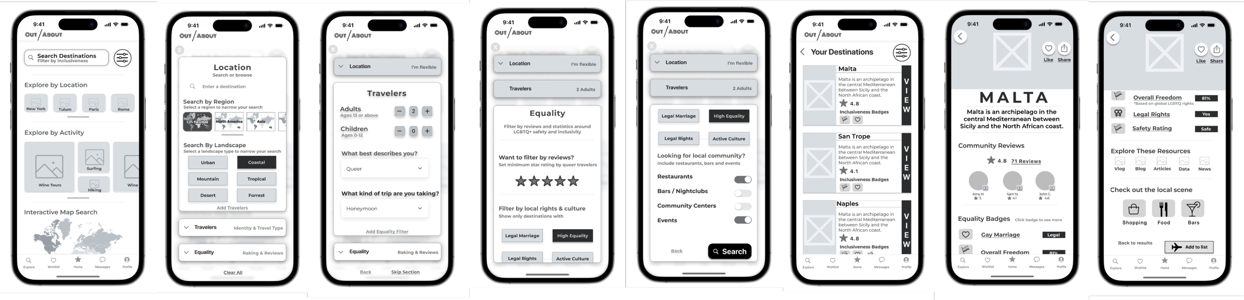 Once the wireframes were locked in, I shifted gears to ponder the visual vibe of OUT & ABOUT before diving into the high-fidelity prototype.
