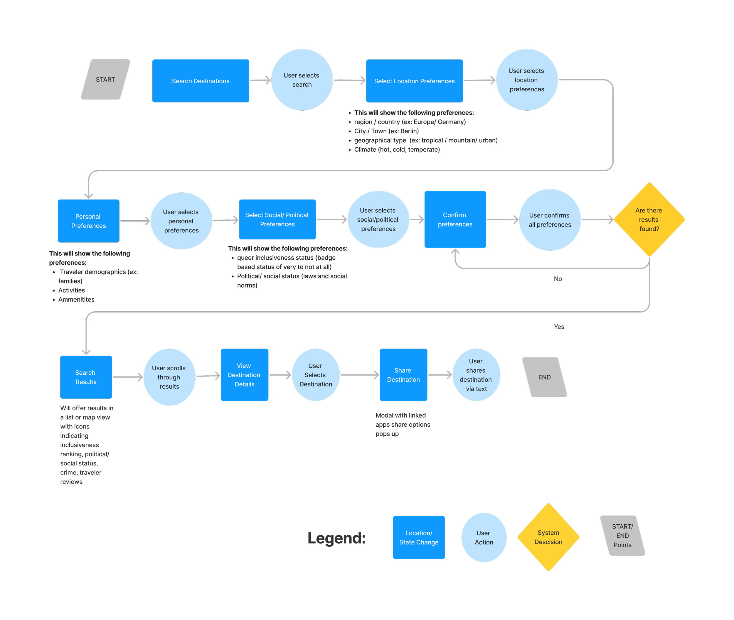 After shaping the persona, I delved into the creation of over 40 user stories. This exercise wasn't just about exploring the potential features of my app; it was a meticulous effort to ensure I was truly meeting the user's needs. My primary emphasis was on refining the destination selection process, recognizing the travelers' inclination to comprehend the social and political landscape of potential destinations before making a travel decision.