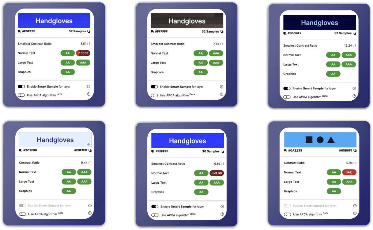Out & About meets the WCAG accessibility standards for text and icon colors with AA or AAA ratings.