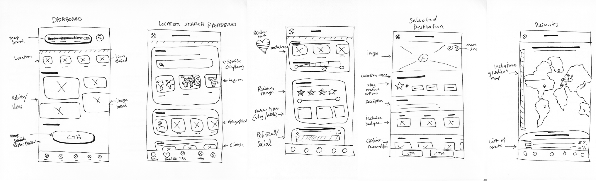 I began by sketching out the different iterations of the pages by hand and I took my time to figure out which ideas matched what my users really needed. Then I translated the most promising elements into solution sketches that became the starting point for building my wireframes.